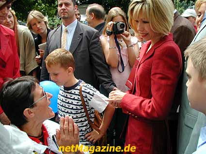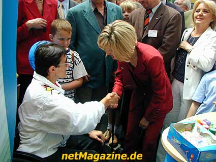 Schirmherrin Doris Schröder-Köpf begrüsst eine Betroffene der