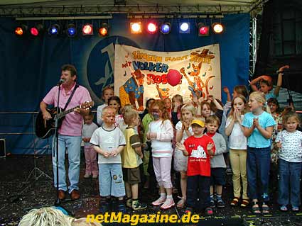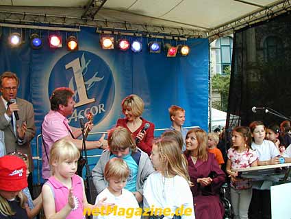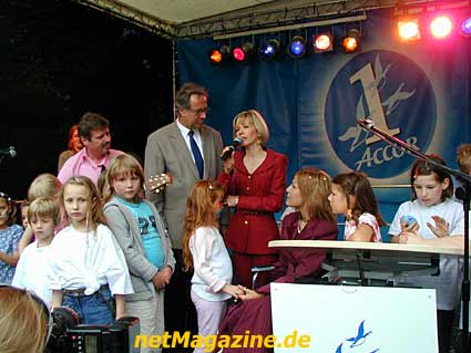 Frau Doris Schröder-Köpf singt mit den Kindern.
