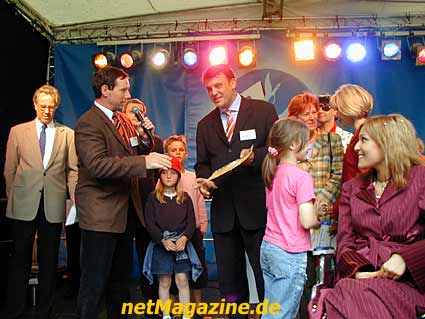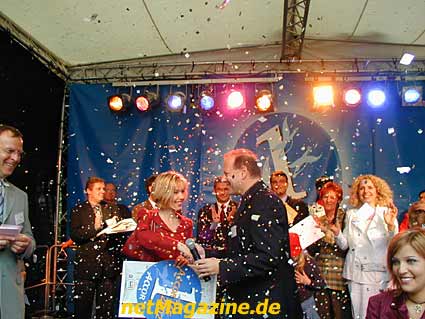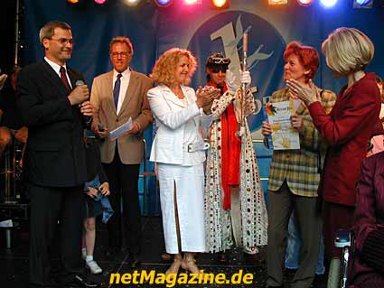 Pyramide Frau Doris Schröder-Köpf das Trikot für den Kanzler mit