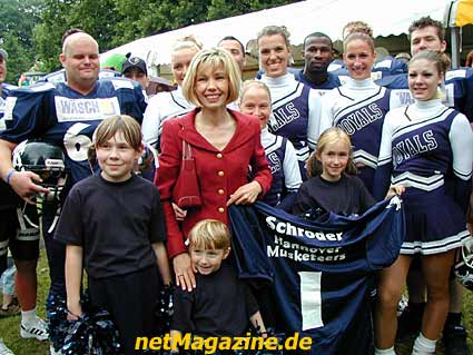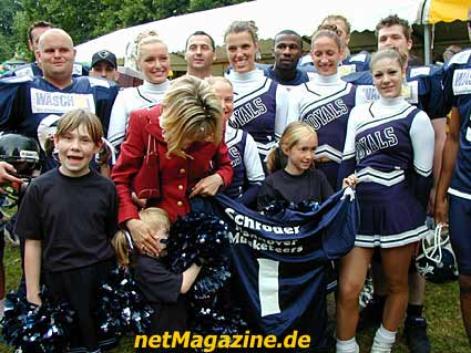 Schirmherrin Doris Schröder-Köpf zeigt stolz, mit den Cheersleadern