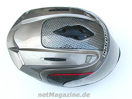 - Aerodynamischer Heckdiffuser an der Helmaußenschale