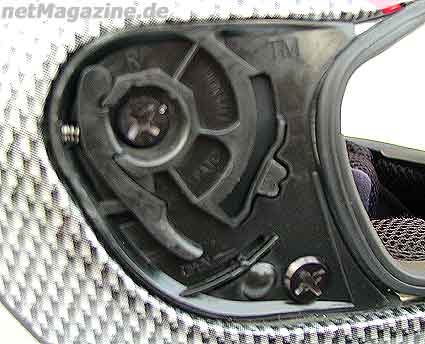 Doppel D VerschlussAuch der Heckdiffuser, der an der Helmaußenschale