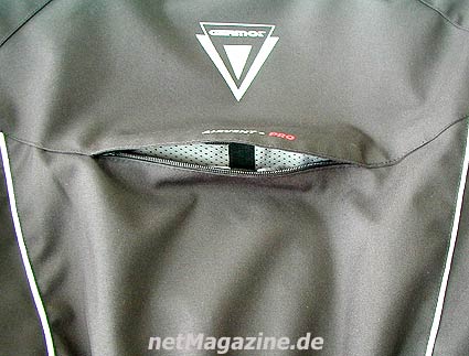 Die Ventilationsöffnungen sind hier seitlich am Schulterbereich gut sichtbarDie eindringende Frischluft sorgt in der Jacke für einen