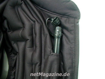 gesamten Weste und können mittels Ventil aufgeblasen