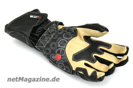 Der Innenhandbereich des Racing Pro besteht ebenfalls aus KängurulederSo wird bei der Fertigung, welche aus Känguru-Rindleder-