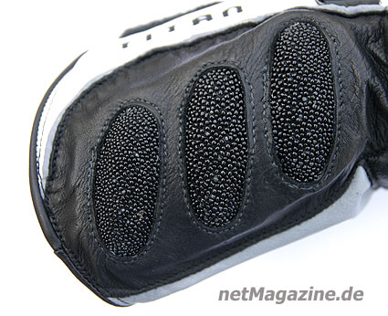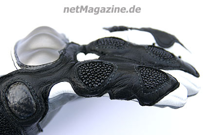 der Handschuh am Handkanten-, Handballenbereich