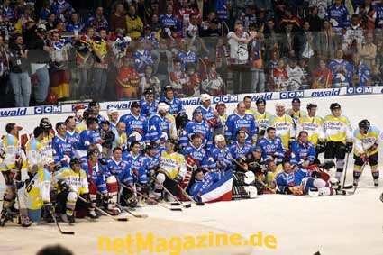 Main-Event des Tages.Das "Remember-Game" zwischen der '95er DEL-Truppe des