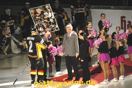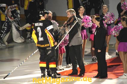 Vor Spielbeginn wurde Jochen Molling von DEB-Präsident Eskens und